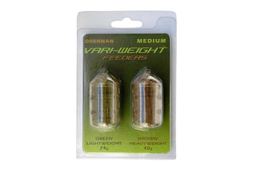 Každé krmítko Vari-Weight Feeder umožňuje snadno upravit zatížení a dokonale se tak přizpůsobit aktuálním podmínkám na lovišti. Základní zátěže se jednoduše zasouvají a vyjímají ze spodní části krmítka. Tato variabilita je velkou výhodou oproti jiným typům krmítek. Balení obsahuje dvě krmítka – jedno zelené a jedno hnědé.