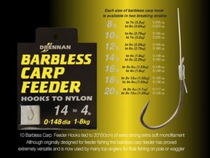 Návazce Barbless Carp Feeder jsou ideální volbou pro lov kaprů na feeder. Díky délce 50 cm a použití extra jemného nylonového monofilu nabízí vysokou citlivost a zároveň pevnost potřebnou pro zdolávání ryb.