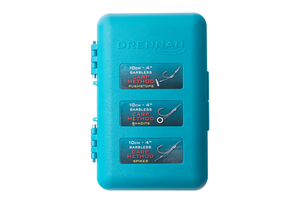 Super kompaktní 4" box na háčky, ideální pro uložení krátkých návazců pro method feeder a hotových háčkových návazců. Každý box má magnetické zavírání, vnitřní těsnění a prázdné samolepky pro rybáře, kteří si chtějí vázat vlastní montáže pomocí vnitřních kolíků o délce 3" nebo 4". Čtyřpalcové Carp Method Hook destičky lze do boxu vložit přímo, což zajišťuje maximální pohodlí, a dodávají se s vlastními identifikačními samolepkami. • Pro 3" (7,5 cm) a 4" (10 cm) návazce • Magnetické zavírání • Nerezové panty • Voděodolné provedení • Vnitřní těsnění • Součástí balení jsou prázdné identifikační samolepky • Kompatibilní s 4" destičkami Drennan Hook Plates