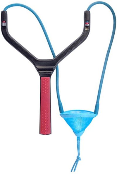 Součástí balení je náhradní latexová guma pro dlouhodobé používání. Model je osazen středně silnou modrou gumou, která poskytuje optimální výkon a přesnost. Prak disponuje speciálně tvarovaným košíčkem pro efektivní a přesné krmení.