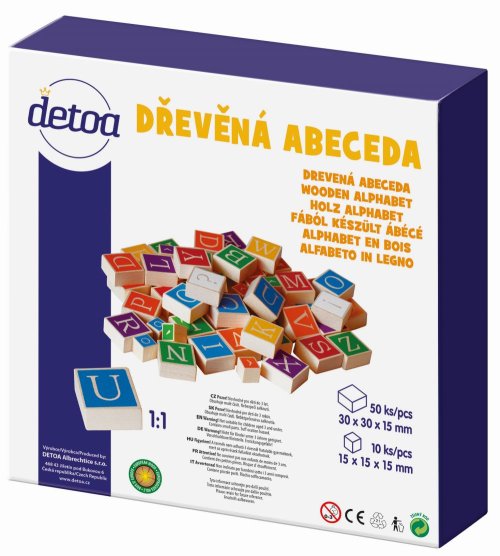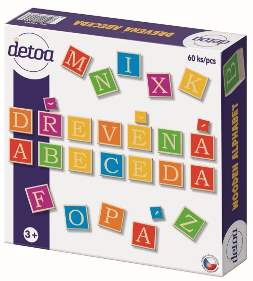 Dřevěné dílky s písmenky a diakritickými znaménky 60ks. Hra učí děti poznávat písmenka a skládat první slova a pomáhá rozvíjet motoriku rukou. Hlavní vlastnosti: výrobek splňuje požadavky EU vhodný pro děti od 3 let