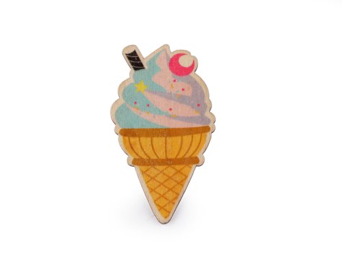 Dřevěná brož liška, pes, lenochod, mýval, jednorožec - multikolor zmrzlina