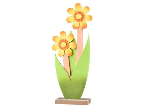 Dřevěná dekorace, filc 120x45x295 mm květiny, žlutá
