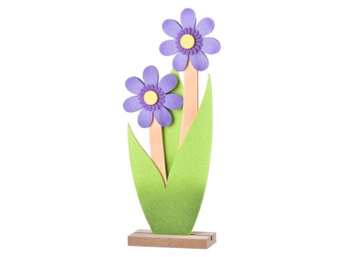 Dřevěná dekorace květiny s filcem fialová přináší do vašeho domova jemný a elegantní vzhled. Tato dřevěná dekorace s filcovými květinami ve fialové barvě je ideální pro jarní výzdobu. Její rozměry jsou 120x45x295mm.