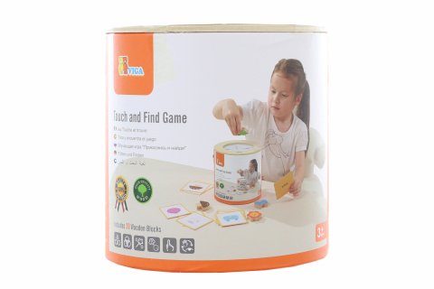 Hra Chytni a najdi. Balení obsahuje 20 kostek, papírový kyblík , 20 hracích karet a víko. Rozměry balení cca 16 x 15,5 cm. Věk 3+
