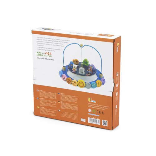 Jedná se o balanční hru s vesmírnou tématikou. Děti si s touto sadou mohou hrát tak, že hledají bloky podobné hmotnosti a umísťují je na správné místo tak, aby zůstaly v rovnováze a nespadly.