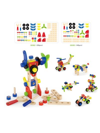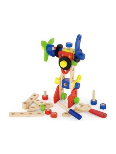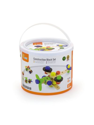 Dřevěná stavebnice konstruktér v kyblíku. Obsahuje 48 dílků a obrázkovou brožuru s návody na stavění. Rozměry balení cca 18 x 15 cm. Věk 3+