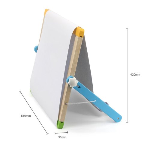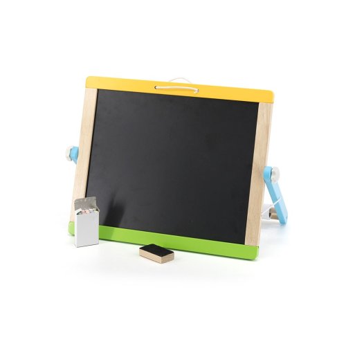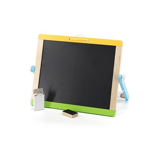 Oboustranná tabule s příslušenstvím je multifunkční výrobek, který pomůže dětem naučit se počítat, malovat a psát. Na jedné straně je magnetická tabule, na kterou lze pomocí vzorových kartiček nebo vlastní fantazie připevnit přiložených 26 magnetů s písmeny, 29 magnetů s geometrickými obrazci a 10 čísel. Kromě toho lze na tabuli psát fixem. Na druhé straně je tabule s křídou a houbičkou. Na zadní straně tabule je také role s listem papíru, který lze na tabuli rozvinout.