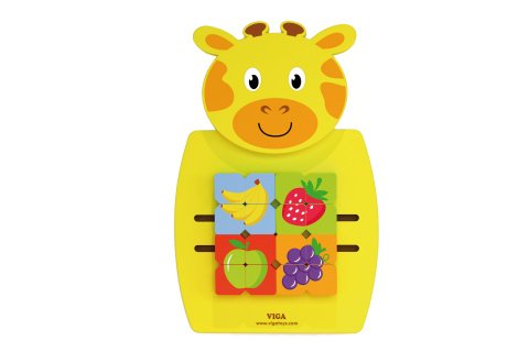 Dřevěná nástěnná hra s motivem žirafy. Velikost cca 36 x 55 x 3,5 cm. Hra ovocná mozaika. Rozměry balení cca 38,5 x 57 x 5 cm. Věk 18m+