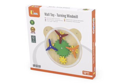 Tato skvělá nová řada hraček na zeď je ideální pro nejmenší, roztomilá sada hraček s hlavou medvěda je navržena tak, aby procvičovala schopnost dětí rozpoznávat barvy, digitální kognitivní schopnosti, koordinaci rukou a očí a logické myšlení. Otáčejte jedním z větrných mlýnů, které jsou poháněny ozubenými koly, druhý větrný mlýn se bude otáčet společně, stejným způsobem otočte ozubené kolo, aby se větrný mlýn otáčel. Rozměry 30x30x3 cm. Rozměry balení cca 31x31x4 cm. Věk 18m+