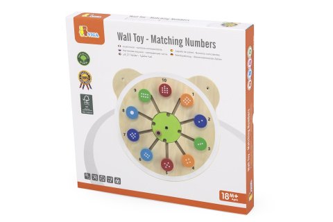 Tato skvělá nová řada hraček na zeď je ideální pro nejmenší, roztomilá sada hraček s hlavou medvěda je navržena tak, aby procvičovala schopnost dětí rozpoznávat barvy, digitální kognitivní schopnosti, koordinaci rukou a očí a logické myšlení. Přesuňte kulaté zářivě barevné dřevěné kostky tak, aby odpovídaly odpovídajícím číslům na panelu. Rozměry 30x30x3,2 cm. Rozměry balení cca 31x31x4 cm. Věk 18m+