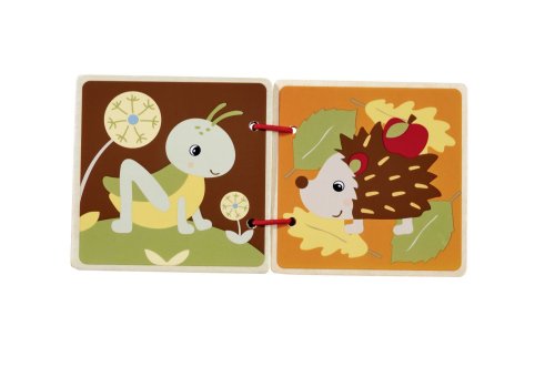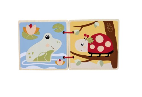Dřevěná knížka s obrázky má 8 stran. Rozměr stránky 8 x 8 cm. Displej obsahuje 16 ks.