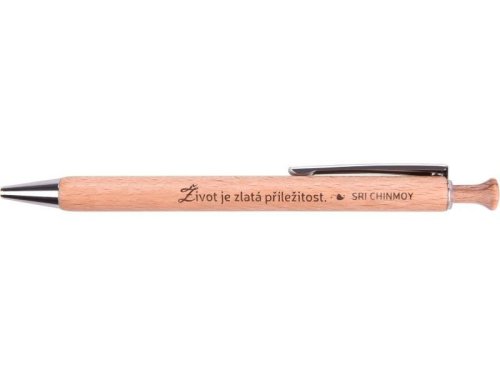 Dřevěná propiska s inspirujícím citátem je krásný dárek pro druhé, ale i pro nás samotné. Obsahuje velkokapacitní náplň a je vyrobená v Německu.