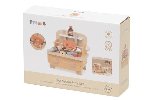 Dřevěný gril s příslušenstvím. Balení obsahuje celkem 22 dílků, mezi nimiž najdete zeleninu, maso, ryby a náčiní nezbytné pro grilování. Rozměry grilu 30x21,5x27 cm. Rozměry balení 31x22x9 cm. Věk 18m+