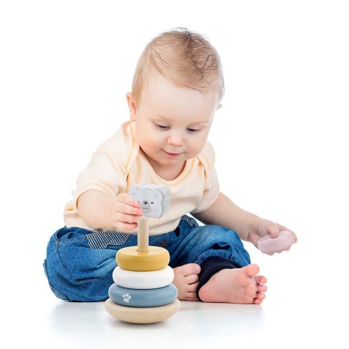 Vzdělávací pyramida od společnosti Viga je klasická hračka pro nejmenší, která vašemu dítěti poskytne zábavnou, zajímavou a kreativní hru. Sada v pastelových barvách obsahuje 6 diskových kostek různých velikostí, včetně jedné ve tvaru medvědí hlavy. V základně je kolík, na který se dílky nasazují. Tato hračka je ideální pro batolata, která začínají stavět věže z kostek. Pyramida podporuje rozvoj koordinace ruka-oko, logického myšlení a navíc podporuje učení rozpoznávání barev. Zde je třeba zdůraznit vzdělávací hodnotu pyramidy s medvědem.