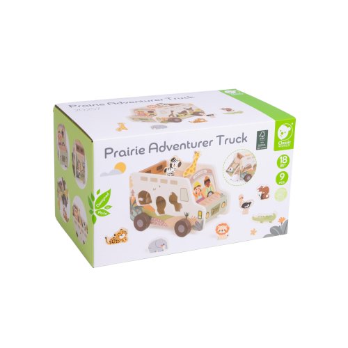 Vydej se na dobrodružnou výpravu savanou se safari autem plným zvířátek! Tato dřevěná vkládačka kombinuje hru s poznáváním – děti přiřazují zvířátka do správných otvorů, rozvíjejí jemnou motoriku, koordinaci i prostorovou představivost. Každý dílek je navržen tak, aby padl do malých dětských rukou. Vozidlo je zároveň úložným prostorem, do kterého si děti mohou zvířátka po hře zase uklidit. Veselý design s ilustracemi a příjemné barvy podporují chuť k objevování. Rozměr balení: 28 × 16 × 16 cm Vhodné pro děti od 18 měsíců.