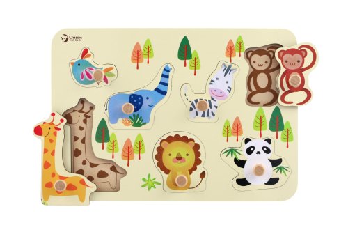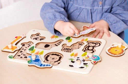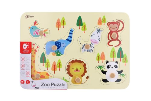Naučte své dítko rozeznávat zvířátka v ZOO už od kolébky. S dřevěnou vkládací destičkou si nejvíc vyhrají prckové od 18 měsíců, spolehlivě ale zaujme i mladší zvědavce. Umisťováním zvířátek do správných otvorů (ale i jejich vyhazováním, strkáním do pusy či schováváním na nejtajnější místa) si děti procvičí motoriku, fantazii a rozlišovací schopnosti. Kvalitní dřevo pro vkládačku je precizně opracováno tak, aby dítěti nehrozilo poranění ani při divočejším zacházení. Vkládačka obsahuje 8 dílů včetně destičky. Rozměry výrobku 30 x 21 x 2 cm. Vhodné pro děti od 18 měsíců.