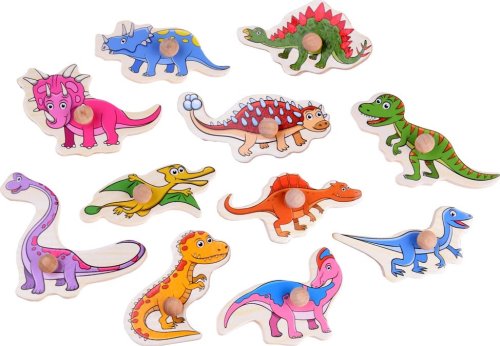 Rozvoj koordinace oko-ruka, logického myšlení a představivosti, dřevěná podložka usnadňuje vkládání a rámečky zabezpečují, aby jednotlivé dílky držely na svých místech, při hře má dítě možnost procvičovat řeč určováním názvů jednotlivých dinosaurů pro snadnější uchopení má každý dílek úchytku.