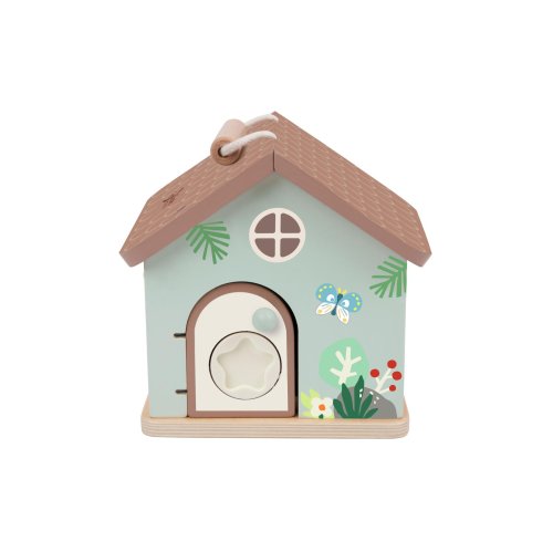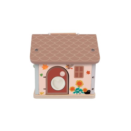 Objevuj svět uvnitř malebného dřevěného domečku! Tato krásná vkládačka nabízí dětem 11 dílků k prozkoumání a vkládání – postavičky, zvířátka i drobnosti z domácnosti. Děti si rozvíjejí jemnou motoriku, učí se koordinaci ruky a oka a trénují trpělivost při vkládání jednotlivých prvků na správné místo. Díky praktickému držadlu na střeše si domeček mohou snadno přenášet. Jemné barvy a ilustrace podněcují fantazii a radost z hry. Velikost hračky cca 16 × 15 × 14 cm Vhodné pro děti od 18 měsíců.