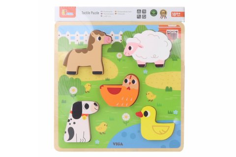 Dřevěná vkládačka se zvířátky. Rozměry dřevěné desky cca 22 x 22 cm. Rozměry balení cca 22 x 25 x 2 cm. Věk 18m+