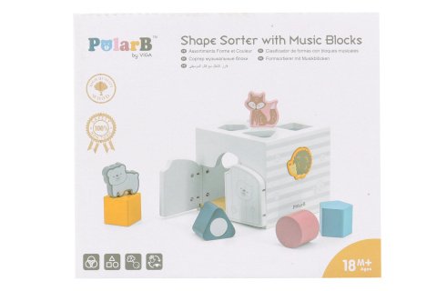 Dřevěná vkládačka se zvířátky. Kostičky chrastí. Rozměry vkládačky cca 13,5 x 12 x 14,4 cm. Rozměr balení cca 15 x 14,5 x 13 cm. Věk 18m+