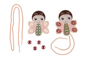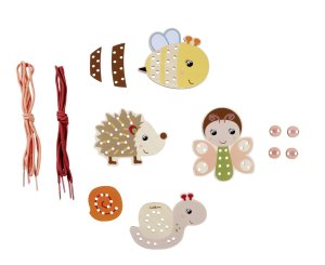 Sada se 4 dřevěnými zvířátky, šňůrkami na vyšívání a dalšími doplňky na ozdobení zvířátek. Sada obsahuje 15 ks. Displej 12 ks.