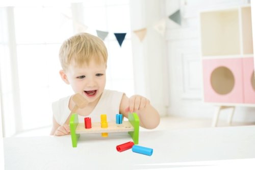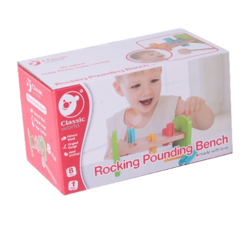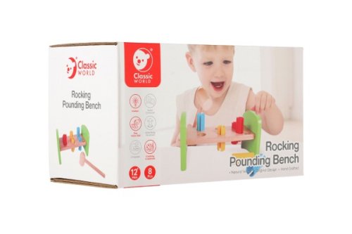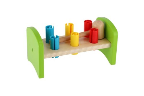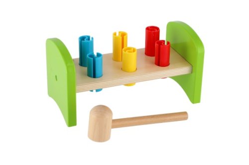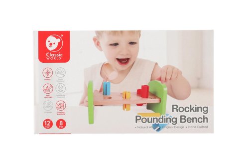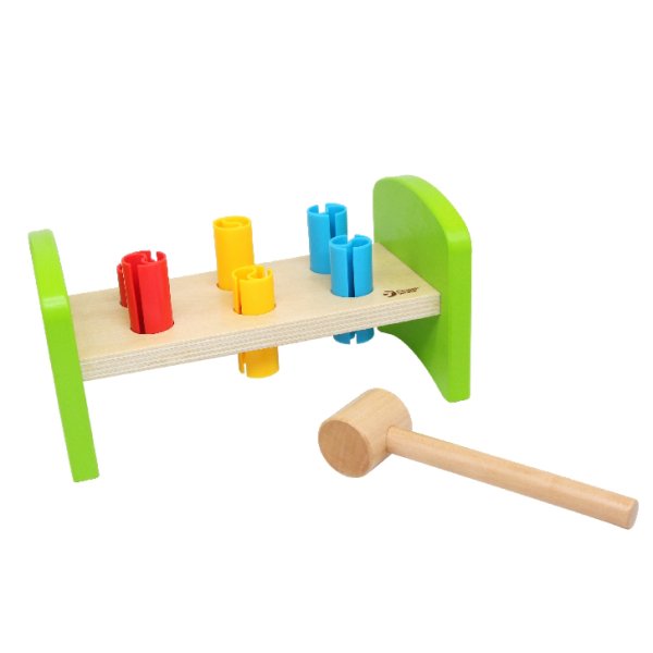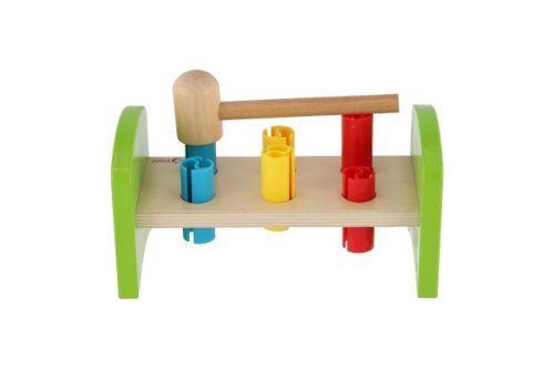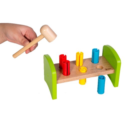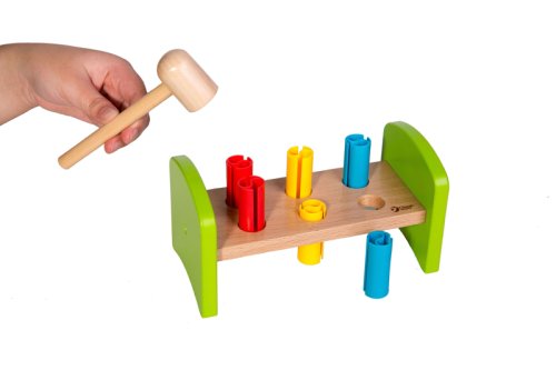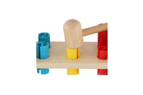 Dřevěná zatloukačka s kladívkem ve veselých barvách je skvělá hračka pro malé kutily, kteří se chtějí podobat svému tatínkovi. Balení obsahuje zatloukačku, kladívko a 6 ks plastových barevných kolíků. Hračka rozvíjí jemnou motoriku rukou. Užívejte spoustu zábavy s touto, z jedné strany stabilní z druhé strany houpací, zatloukačkou. Rozměry balení 21 x 12 x 11 cm. Vhodné pro děti od 12 měsíců.
