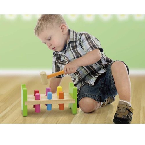 Barevná, dřevěná zatloukačka Viga, kterou si zamiluje každé malé dítě. Dřevěná deska se šesti otvory a paličkou pro nácvik zatloukání. Po zatlučení kolíků se stojánek může obrátit a začít zatloukat znovu. Sada obsahuje stojánek, 6 barevných kolíků a paličku. Hračka určená pro děti od 2 let. Naší prioritou je bezpečnost a kvalita našich výrobků, a proto barvy použité na hračkách nejsou toxické a splňují bezpečnostní standardy (EN71 a ASTM). Pro děti od 2 let. Hračka je vhodná jako krásný dárek, který si vaše děti zamilují. Rozměry: 23x12x8cm, rozměry balení: 27x15x9cm