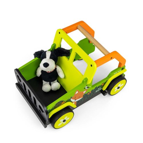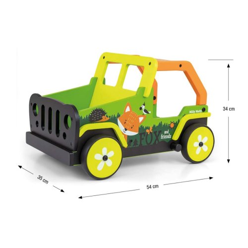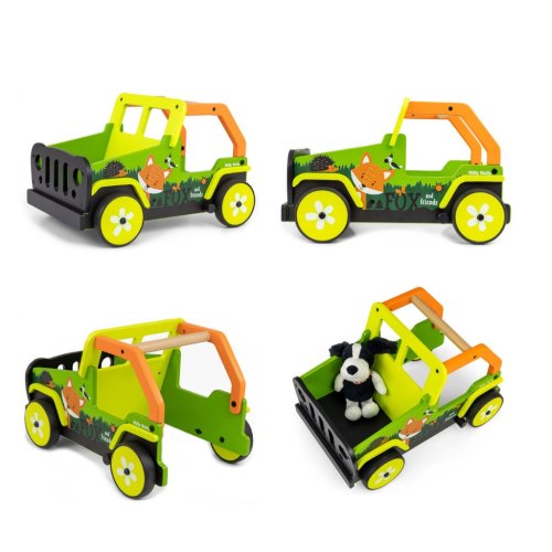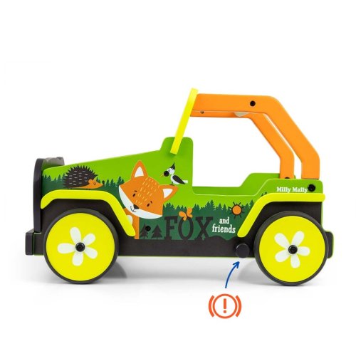 Toto dětské chodítko, inspirované legendárními terénními auty, je vyrobeno z vysoce kvalitního dřeva a ekologických materiálů. Kryty kol jsou vyrobeny z měkkého TPR plastu, který je flexibilní a odolný a umožňuje použití na všech površích bez poškození nebo poškrábání. Neobsahují změkčovadla a jsou šetrné k životnímu prostředí.