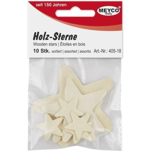 Dřevěné výřezy, tvar hvězdičky. Sada 10 ks, 4 velikosti, 23 - 65 mm.