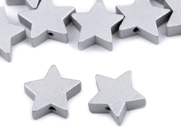Metalické dřevěné korálky ve tvaru hvězdy vnesou do vašich výtvorů moderní design. Můžete je navlékat na silon nebo jiný návlekový materiál. Korálky lze použít na výrobu náramků, náhrdelníků, náušnic nebo i na tvorbu přívěsků ke klíčům, kabelce apod.