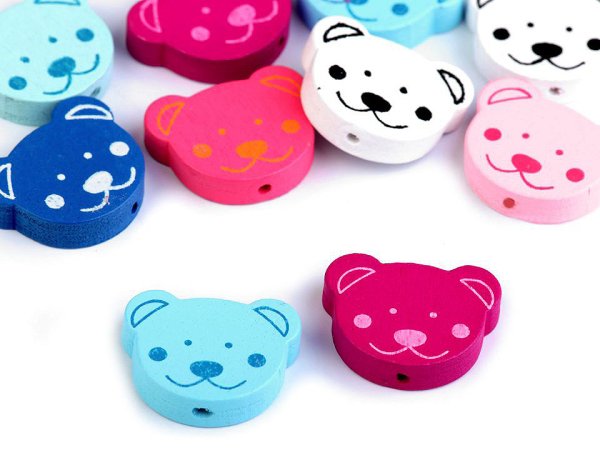 Dřevěné korálky medvídek, srdce, motýl - mix barev medvěd (10 ks)