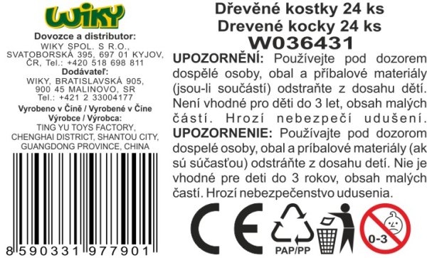 Dřevěné kostky 24 ks. Rozměry 14,5x14,5 cm.