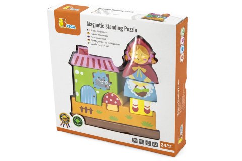 Dřevěné magnetické kostky - stavebnice s motivem Červené Karkulky. Rozměry stavebnice 20x20x4,5 cm. Rozměry balení 26x26x5,5 cm. Věk 24m+