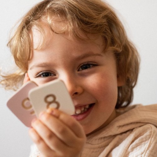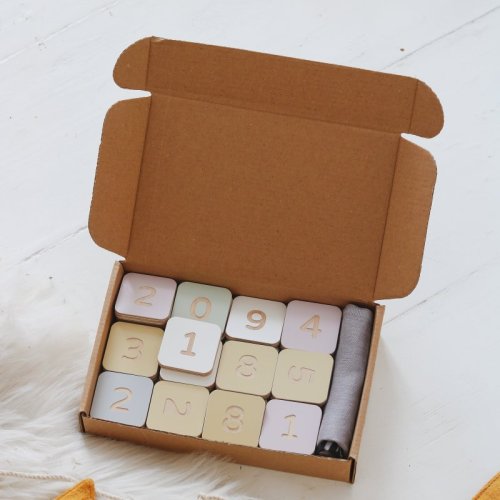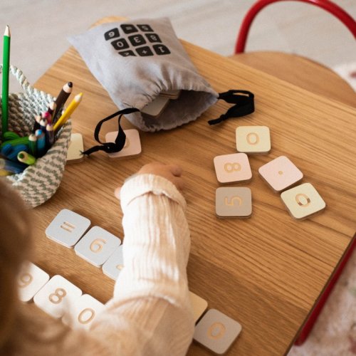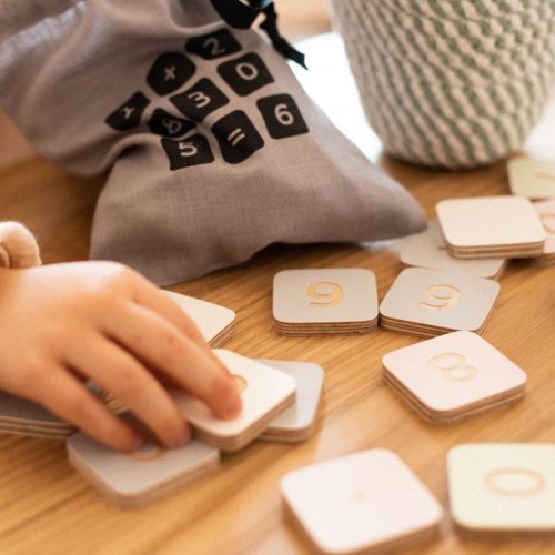 Sada dřevěných kostiček, která umožní dítěti hravou formu poznat číslice.