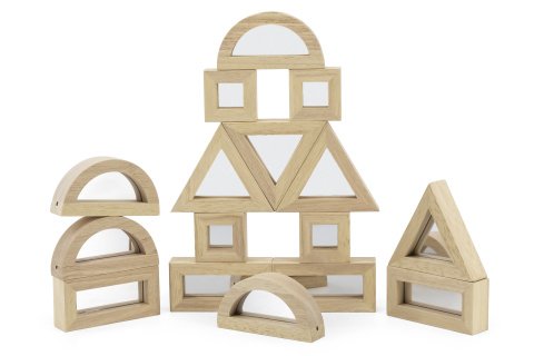 Dřevěné zrcadlové kostky - stavebnice. Rozměry 28,5x27,7x6,6 cm. Rozměry balení 29x28x7 cm. Věk 18m+
