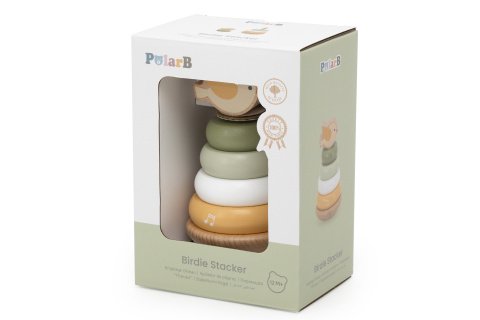 Dřevěná pyramida s ptáčkem. Rozměry pyramidy 8,2x8,2x13,5 cm. Rozměry balení 13x9x18 cm. Baleno v krabici. Věk 12m+