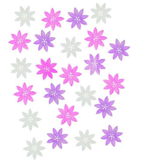 Dřevěné kytky v odstínech růžové, fialové a bílé jsou určeny k vytváření dekorací.