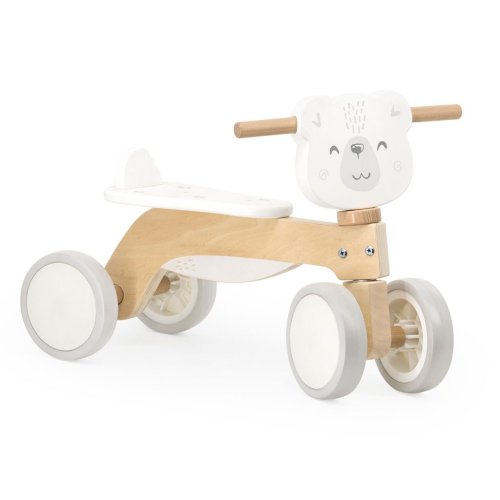 Toto roztomilé dřevěné odrážedlo ve tvaru medvěda zajišťuje bezpečné hraní díky robustní dřevěné konstrukci a odolným EVA pneumatikám, které umožňují hladkou jízdu.