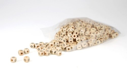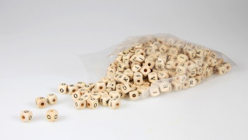 300ks dřevěných korálků s předtištěnými písmeny. Velikost korálku 1cm