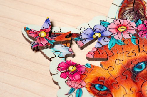 Zažijte nesrovnatelnou zábavu při skládání vysoce kvalitního dřevěného puzzle s motivem barevné lišky od společnosti Ravensburger. Jedinečné dílky puzzle do sebe perfektně zapadají. Tyto unikátní puzzle jsou vyrobené ze dřeva, na kterém je vytvořený vysoce kvalitní barevný potisk. Každý dílek má zcela unikátní tvar. Najdete zde dílky, které vypadají jako skutečná zvířata, květiny a jiné předměty z reálného života. Dále zde najdete i dílky abstraktních tvarů. Při skládání tohoto dřevěného puzzle uvolníte mysl a báječně se odreagujete. Vyrobeno v Evropě.