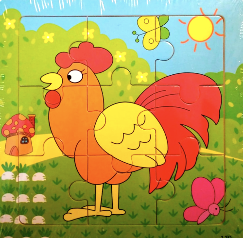 Dřevěné dětské puzzle (skládačka) v rámečku v poutavých barvách pro nejmenší děti - s devíti dílky. Dílky se mohou umisťovat na dřevěnou desku s rámečkem nebo lze obrázek skládat bez rámečku. Rozměr složeného puzzle cca 12 x 12 cm
