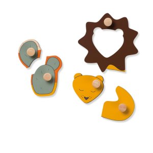 Dřevěná skládačka podporuje jemnou motoriku a hravé učení koordinace ruka-oko. S láskou navržené puzzle se skládá z dřevěné desky a dílky v podobě zvířátek. Díky praktickým knoflíkům vaše dítě snadno uchopí každý kousek. Uchopením a přilepením dílků na místo vaše dítě vytvoří zvířátko a zároveň trénuje tvary, paměť, jemnou motoriku, koordinaci oko-ruka a koncentraci. Udržitelná hračka je vyrobená ze dřeva s certifikací FSC®. Vhodné pro děti od 1 roka.