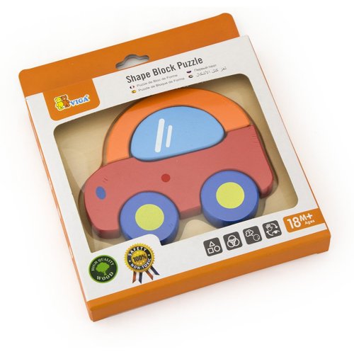 Dřevěné puzzle - vkládačka pro nejmenší s motivem autíčka. Rozměry autíčka cca 12 x 10,5 cm. Rozměry balení cca 15,5 x 18 x 2 cm. Věk 18m+