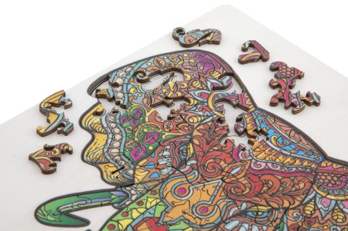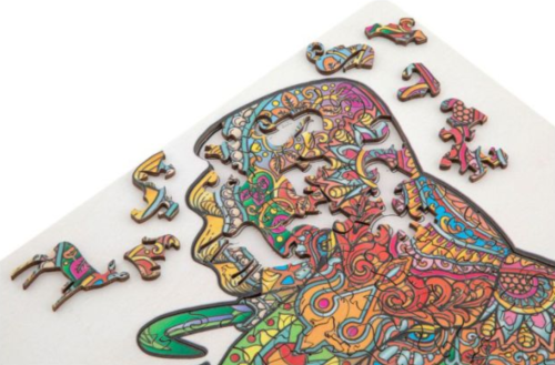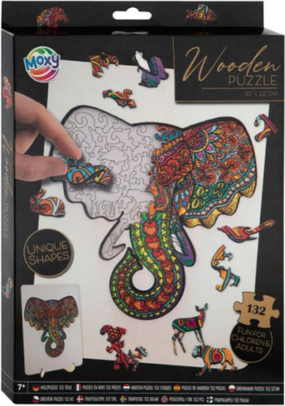 Úžasné puzzle s jedinečnými dřevěnými dílky o velikosti 30x22 cm, každý dílek je unikátní a je ve tvaru různých zvířátek, dílky se skládají do destičky, po složení vznikne z malých zvířátek/dílků obraz jednoho velkého, součástí balení je také praktický stojánek, aby bylo možné dokončenou skládačku patřičně vystavit. Zábava pro děti i dospělé.