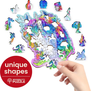 Laserem vyřezávané dřevěné puzzle WOODEN CITY se svými speciálně tvarovanými dílky je neskutečně zábavné. Část dílků je vyrobena ve tvaru zvířat, jejichž výsledný efekt umocňují laserem zvýrazněné detaily. Tyto dílky mohou samostatně stát jako drobné figurky. Skládání puzzle s různotvarými dílky je obtížnější a představuje větší výzvu, než skládání klasického puzzle. Značka WOODEN CITY kromě unikátního konceptu puzzle nezapomíná na ekologii, u těchto výrobku proto nenaleznete žádné plastové obaly. s unikátně tvarovanými dílky ve tvaru zvířat vyšší obtížnost při menším počtu dílků - skládání puzzle s různotvarými dílky je náročnější hladké hrany bez třísek díky preciznímu laserovému zpracování vyrobeno z pevné dřevovláknité HDF desky o síle 3-4mm uvnitř balení je samostatná předloha na skládání EKO Friendly 100% bez plastových obalů - puzzle je v papírovém sáčku uvnitř papírové krabičky vhodný dárek pro jakoukoliv příležitost Velikost: M Počet dílků celkem: 150 Unikátně tvarované dílky: 15