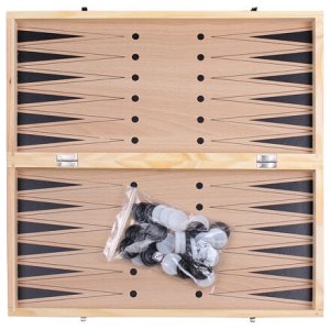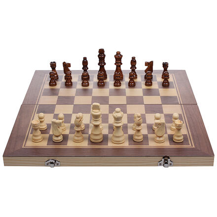 Hrajete rádi šachy? Dámu? Vrhcáby? Nebo ještě lépe, hrajete rádi všechny tyto tři společenské hry? Herní sada z borovicového dřeva Merco dřevěné šachy 3v1 zahrnuje všechny náležitosti k těmto hrám dohromady. Uvnitř skládacího uzavíratelného boxu najdete 16 tmavých + 16 světlých figurek z borovicového dřeva pro šachy a dámu a 15 tmavých + 15 světlých plastových kamenů (anglicky Backgammon, německy Wurfzabel). Rozměr hrací plochy v rozloženém stavu je 39 x 39 cm, složený box má rozměr 39 x 19,5 x 5 cm a v originálním balení má hmotnost 0,95 kg. Nejvyšší šachová figurka měří 7,8 cm, nejmenší 3,4 cm a průměr kamenů pro vrhcáby je 2,7 cm.