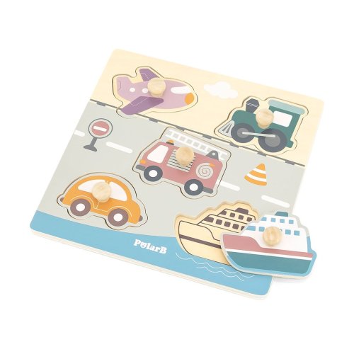 Prvky skládačky jsou opatřeny dřevěnými kolíčky, díky nimž může batole snadno uchopit skládačku do ruky a umístit ji na správné místo na dřevěném podkladu. Jedná se o jeden z nejlepších způsobů, jak si procvičit soustředění a koordinaci ruka-oko.