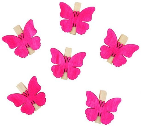 Růžoví dřevění motýlci. Díky kolíčku se dají všestranně použít, například krásně ozdobí jarní věnce.