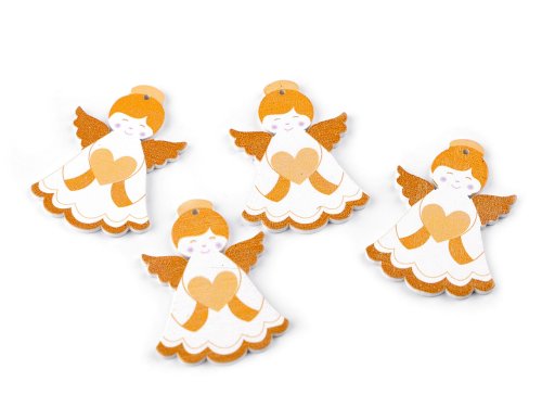 Dřevění andílci vyniknou na stromečku, na věnci a zajímavě ozdobí i zabalený dárek. V horní části mají průvlek, kterým můžete provléknout šňůrku či silon na zavěšení. Šňůrka není součástí balení.